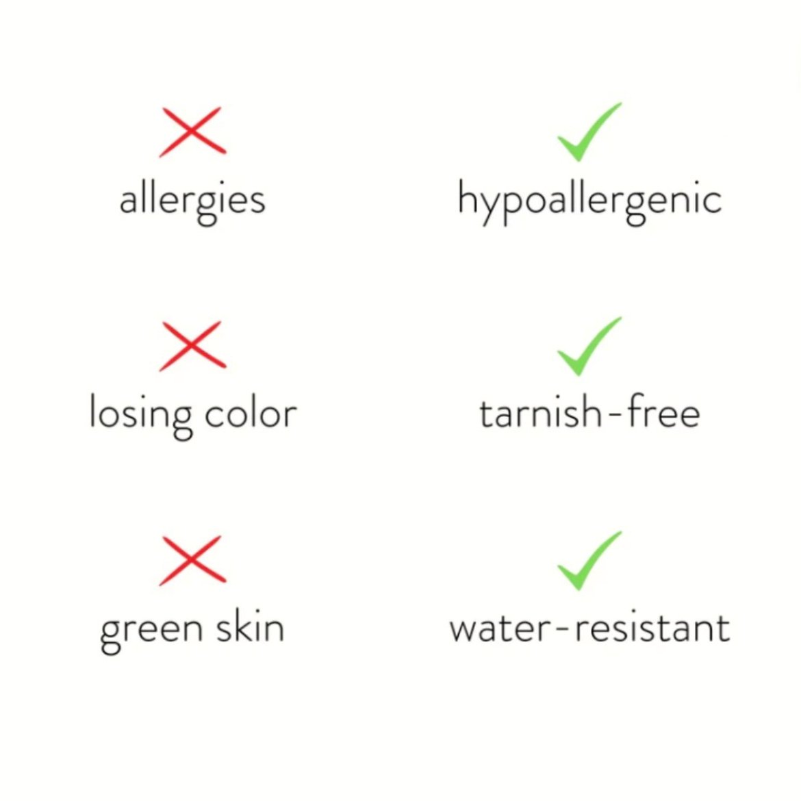 Tillverkade i vattentåligt rostfritt stål som varken tappar färg eller oxiderar – bär dem varje dag utan bekymmer.
