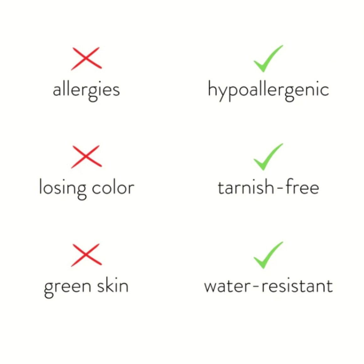 • Hypoallergen, fri från bly och nickel