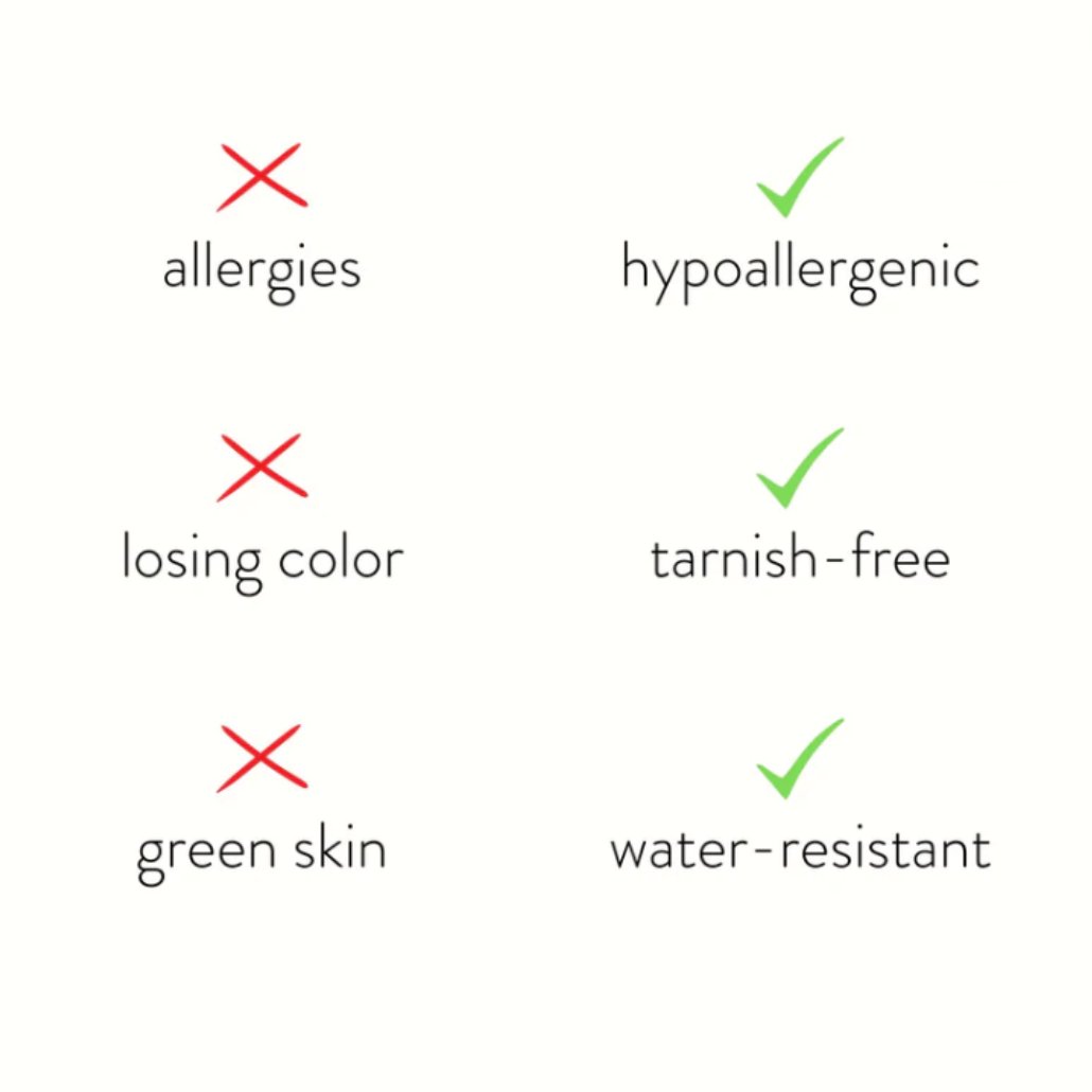 Tillverkat i vattentåligt rostfritt stål som inte missfärgas eller oxiderar – skapat för att följa dig varje dag utan bekymmer.
