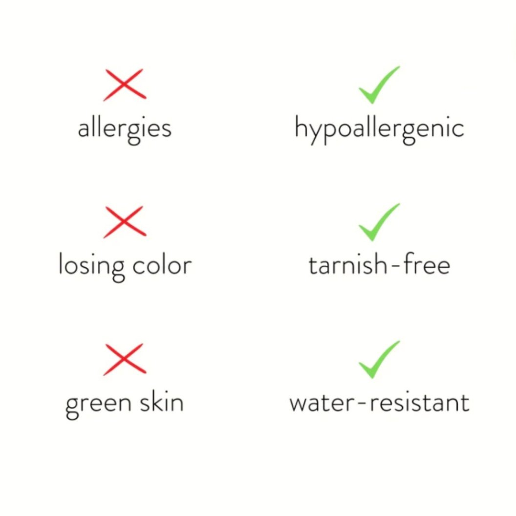 Tillverkat i vattentåligt rostfritt stål som inte tappar färg eller oxiderar, så att du kan bära det varje dag utan oro.